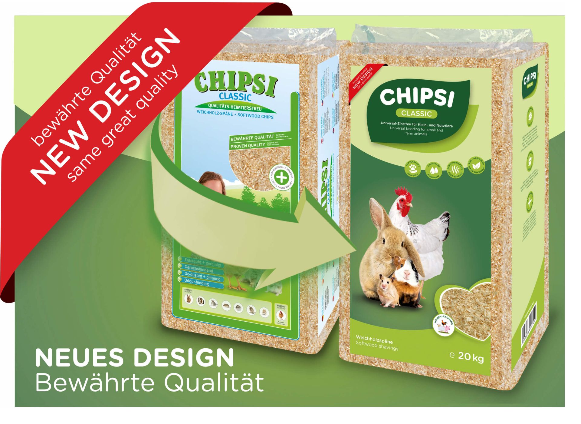 Seit mehr als drei Jahrzehnten bietet CHIPSI ein breit gefächertes Sortiment an pflanzenbasierter Einstreu mit hoher Saugkraft, sicherer Geruchsbindung und einfacher Handhabung. Mit dem Relaunch bleibt CHIPSI seiner Linie treu und verleiht ihr doch ein neues Gesicht. Es ist klarer, moderner und noch nachhaltiger.