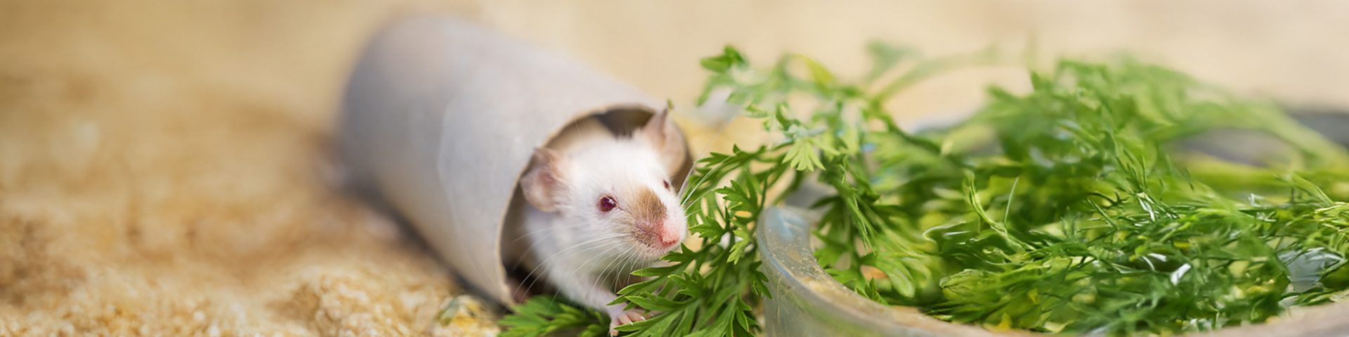 Mäuse ernähren sich bevorzugt von getreidearmem Trockenfutter mit Saaten, Kräutern und Gemüseflocken. Frisches Grünfutter oder klein geschnittenes Gemüse ergänzen den Speiseplan. Proteine (z. B. getrocknete Insekten) sind in kleinen Mengen wichtig. Frisches Wasser muss jederzeit bereitstehen.